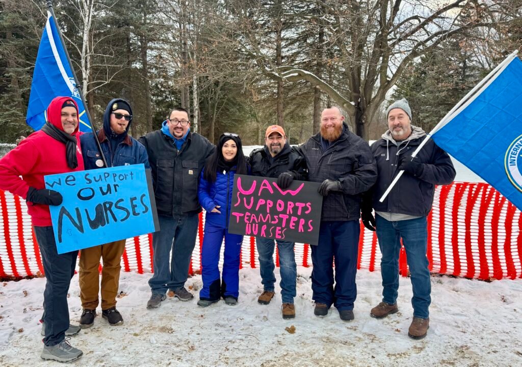 On December 6, 2025, several UAW Local 659 Members and Officers joined the Henry Ford Nurses of Teamsters 332 on their picket line in a show of solidarity. These dedicated nurses have been on strike for more than 90 days, continuing their fight with strength and determination. Our Local has also supported their efforts by donating firewood and hand and foot warmers to help keep them comfortable during the long hours on the line. We are proud to stand with them as they continue advocating for fair treatment and safe working conditions.